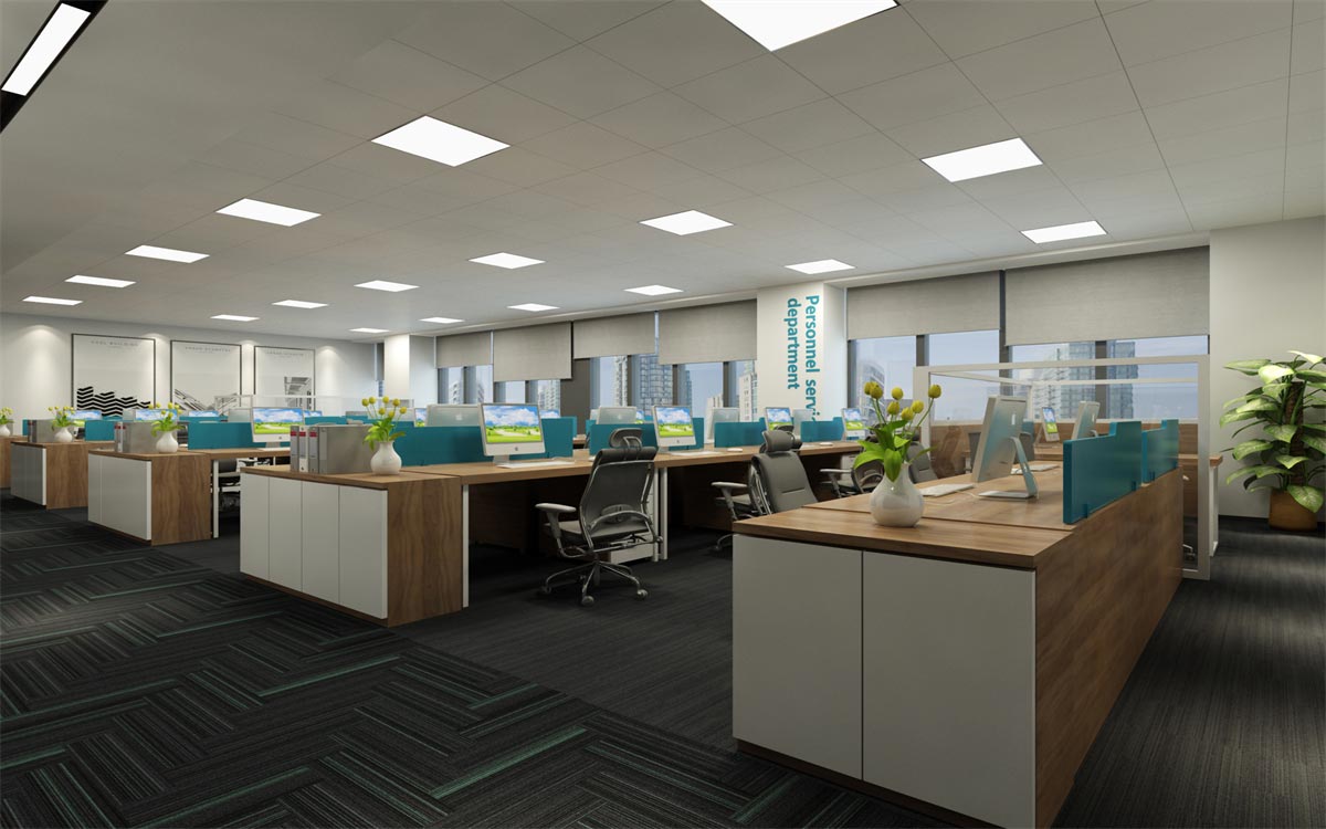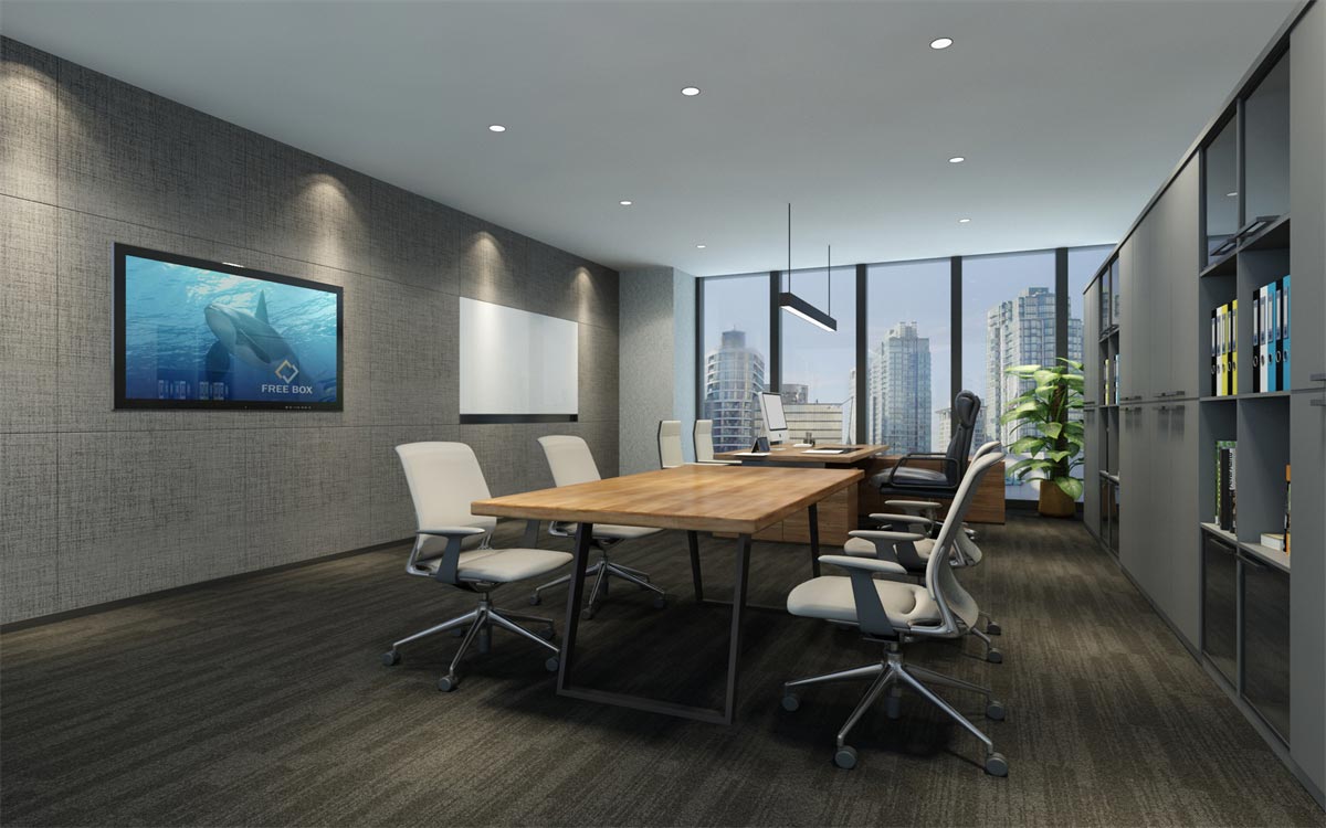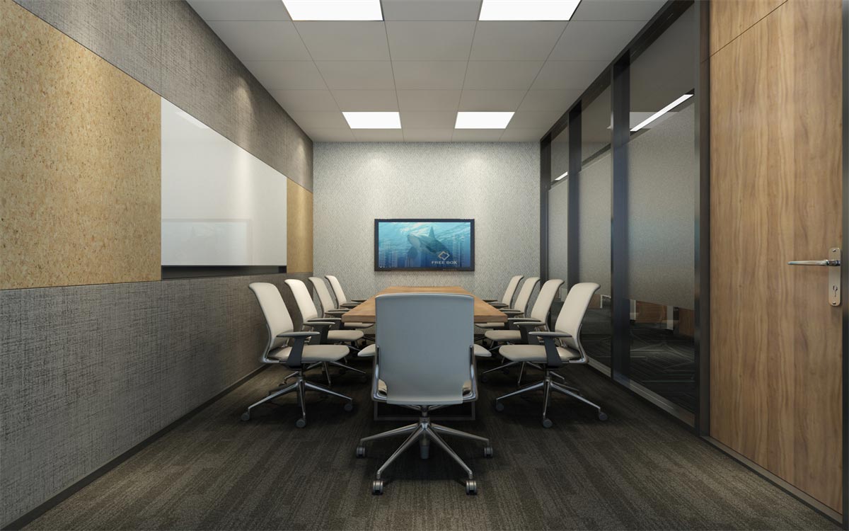 在前臺(tái)的設(shè)計(jì)方案上,采用企業(yè)的貨運(yùn)集裝的VI配色,配上深色的家具和海洋色的地毯,烘托出活躍靈動(dòng)的辦公氛圍,左側(cè)開方式的走道,增加了空間的延伸性,猶豫海洋的深邃。