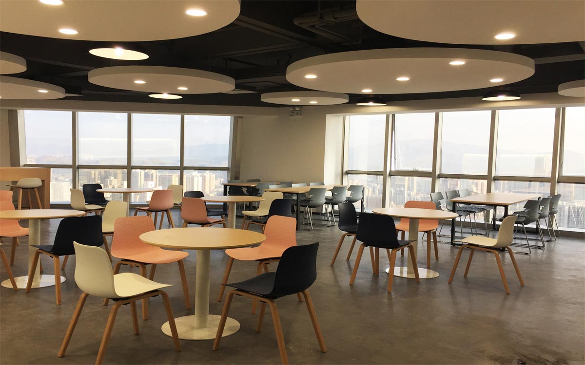 整個(gè)辦公室設(shè)計(jì)方案在色彩搭配方面大膽,深色的地毯,原木色的家具,白色的墻面,雖然色彩反差強(qiáng)烈,但視覺上絲毫不覺得突兀,空間的規(guī)劃,和燈光的搭配,以及公司VI粉色的中和,讓整個(gè)空間清新而又遼闊。