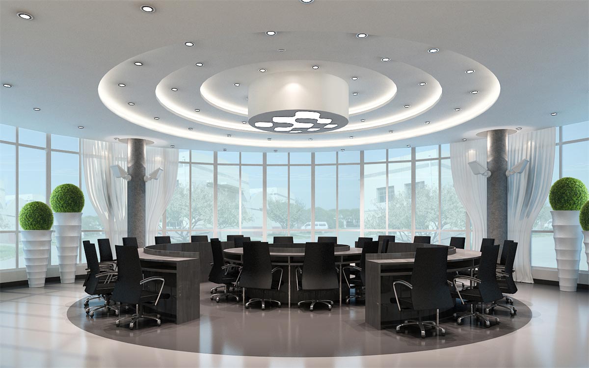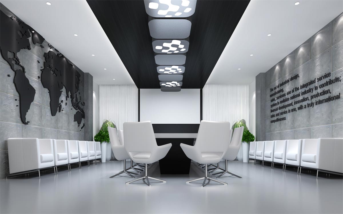 這類科技感辦公室裝修需要通過冷灰的色調(diào)才能彰顯其高端大氣的科技感,因此,選用最為經(jīng)典的黑白灰色調(diào)進行搭配設計,簡約的幾何式線條,黑白色的交替搭配(黑色墻面與白色天花,或白色墻面黑色家具),整塊的落地窗給足自然光的照射,搭配燈光的光、影映襯,與現(xiàn)代簡約的冷色調(diào)家具搭配,讓整個辦公環(huán)境科技感十足。