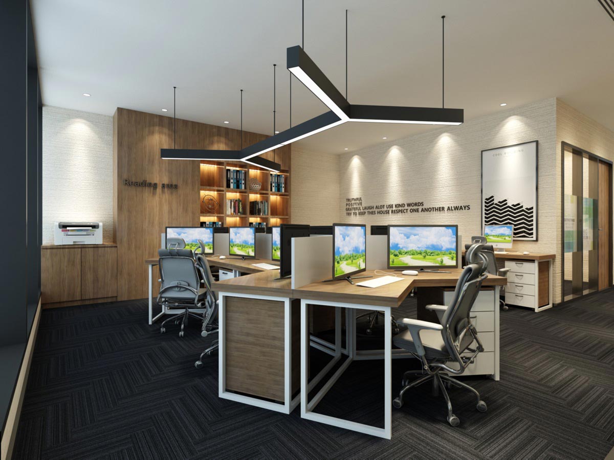 該公司的辦公室設(shè)計效果圖摒棄傳統(tǒng)的前臺,通過開放式的設(shè)計,讓前臺門面與接待融為一體,接待區(qū)用仿餐廳設(shè)計,加上燈光的點綴和中國風(fēng)的掛畫,營造出文藝而又舒適的氛圍。其他辦公區(qū)域也同樣采用簡單的原木色家具,黃色與白色的搭配 整體色感趨于柔和,易于接近。