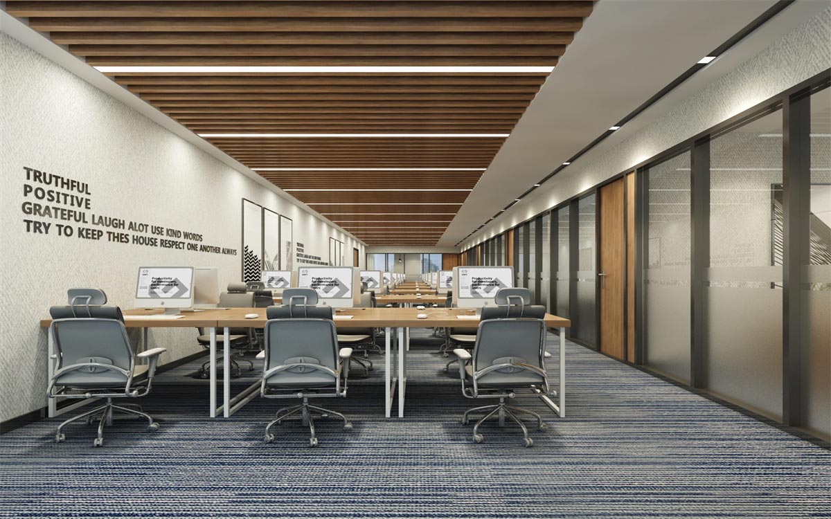 深圳市智慧城市大數(shù)據(jù)研究院是在深圳市委市政府指導(dǎo)下成立的公益性大數(shù)據(jù)研究智庫(kù)(民辦非企業(yè)單位)。我們對(duì)這種現(xiàn)代公司的辦公室布置設(shè)計(jì)是使用大型辦公室、集中辦公室設(shè)計(jì)的方式增強(qiáng)溝通、以節(jié)省空間,方便監(jiān)督,以提高效率。為了解決大空間辦公環(huán)境造成相互干擾的缺點(diǎn),第一,根據(jù)部門或小部門的劃分,同一部門的人員一般集中在一個(gè)區(qū)域。第二個(gè)是采取低隔斷,高度為1.2到1.5米,為每位員工創(chuàng)造一個(gè)相對(duì)封閉,獨(dú)立的工作空間,減少相互的干擾。第三是有一個(gè)特殊的接待區(qū)和休息區(qū),不要因?yàn)轭櫩偷脑L問而破壞他人的安靜工作。這種大型辦公模式適合有創(chuàng)造性的勞動(dòng)力技術(shù)人員和有更多社會(huì)工作的公關(guān)人員的高新企業(yè)。